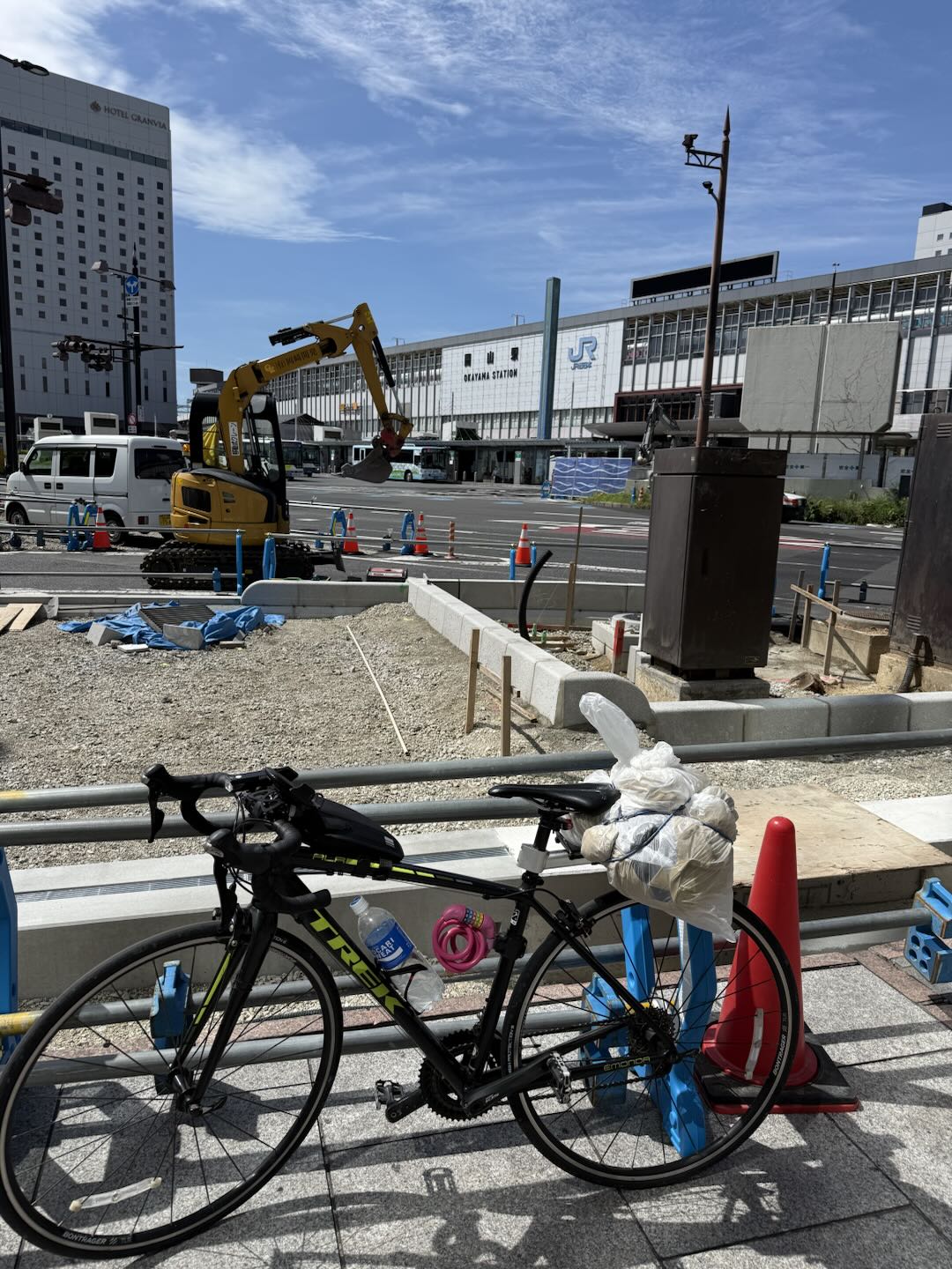 岡山駅前は工事をしているところがあり、少し遠くから駅と自転車でパシャリ📷