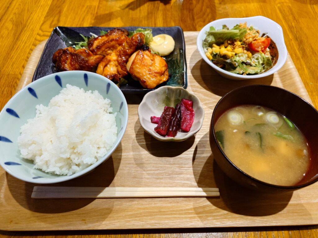 チキンはプリプリジューシーでとっても美味しく、サラダも野菜がたくさん入っていて栄養満点でした。