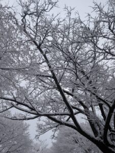 いきなり凍り付いた桜の木がお出迎え!